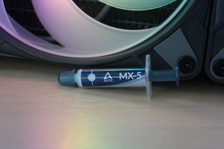 Jahutiga tuleb kaasa MX-5 pasta, mis on paigutatud väiksesse süstlasse ning seda on väikeses koguses 0.8 grammi, kuid piisav, et ära kasutada kaheks jahuti paigaldamisel. Pasta on igati algajasõbralik kuna ei juhi elektrit. Kui ausalt öelda siis termopastadel väga vahet ei ole, kuna enamus jäävad kas samasse vahemikku või eristuvad mõõtmisvea tõttu. MX-5 jahutusvõimsus on testid ning tulemust on võimalik näha alumisel graafikul.