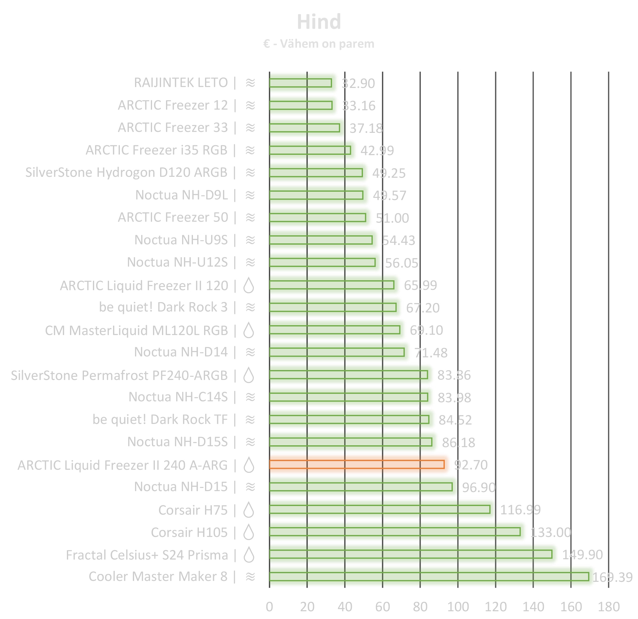 Osad jahutid on võrdlusest puudu, kuna ei ole enam müügil, seega on hinnavõrdluses ainult need, mis turult hetkel saada on. Mõne hind on mõjutatud sellest, et toote müüjat on Eestis ainult üks, mille tulemusena suhtuda sellesse võrdlusesse lihtsalt illustreeriva pilguga. Hinnad pärinevad ülevaate kirjutamise hetkel kõige väiksema hinnaga pakkujatelt HinnaVaatluse andmete põhjal.