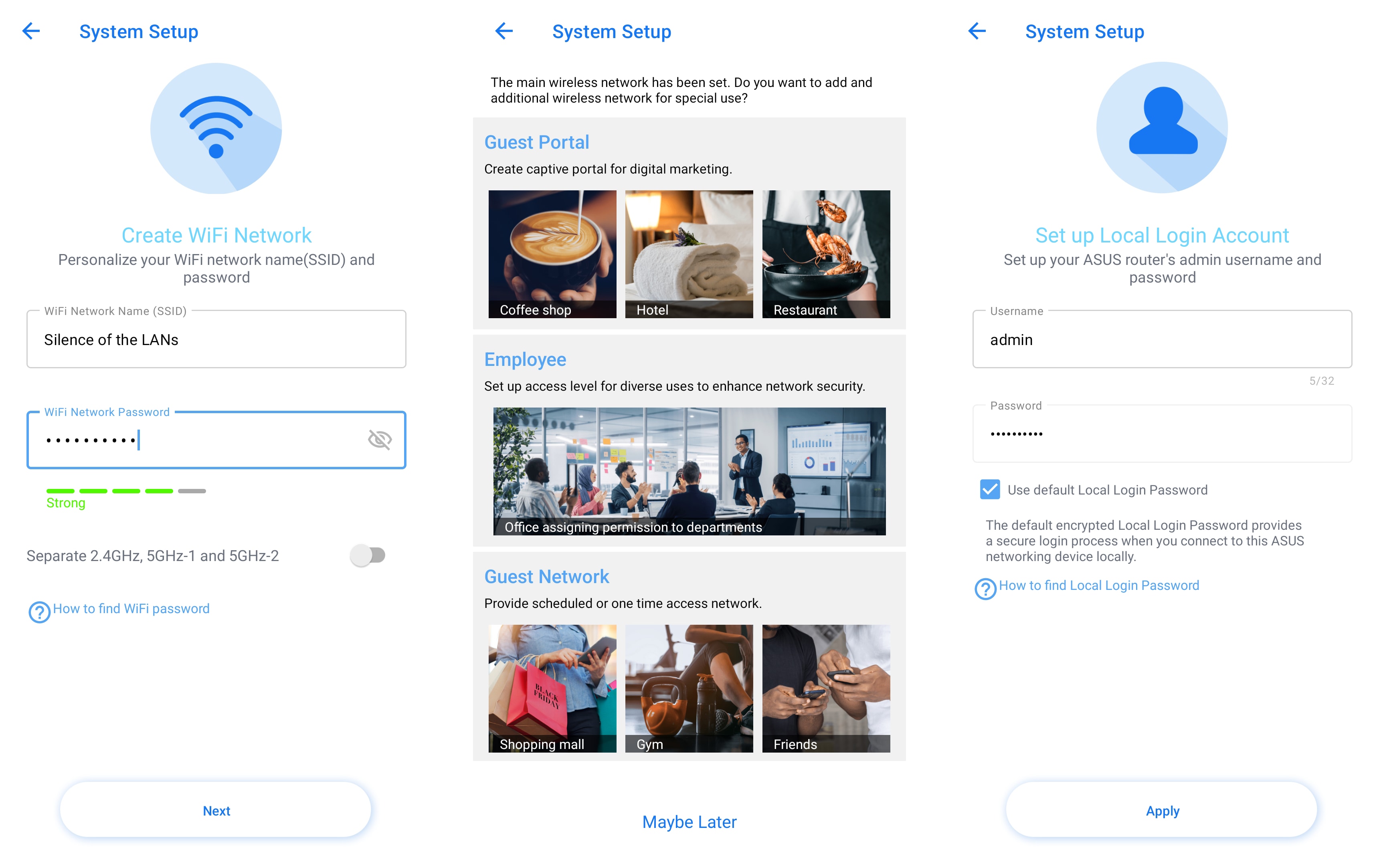 ASUS ExpertWiFi EBM68 tarkvara ühendab endas tuntud funktsioone ZenWiFi tarbijate seeriast ja tutvustab eripäraseid elemente, mis on mõeldud väikestele ja keskmise suurusega ettevõtetele. Silmapaistva funktsioonina on sisse ehitatud võimalus ise määratletud võrke luua, mis võimaldab kasutajatel luua turvalisi ja isikupäraseid võrke mitmekesisteks rakendusteks. See hõlmab eraldiseisvat WiFi-võrku töötajatele, külaliste portaale, kus on reklaamivalikud, ühekordse ligipääsu võrke, ajakavaga võrke, IoT-võrke ja VPN-ühenduvust protokollidega nagu WireGuard VPN, IPSec, OpenVPN või PPTP. Need funktsioonid suurendavad võrgu paindlikkust ja turvalisust, pakkudes teenuseid erineva suurusega ettevõtetele.
