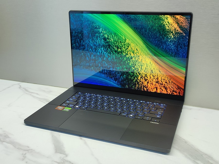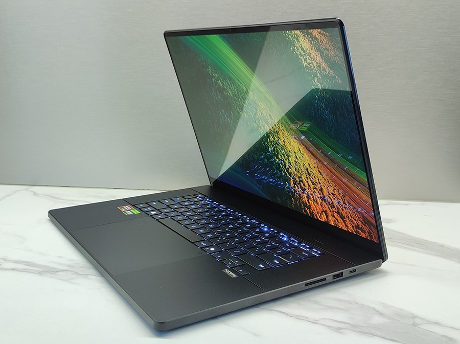 Sülearvuti 16-tolline 4K OLED-ekraan katab 100% DCI-P3 värviruumi ja on Pantone-sertifitseeritud, tagades täpse värviedastuse. See on eriti oluline fotograafidele ja graafilistele disaineritele, kes vajavad töökindlat värvitruudust. Lisaks võimaldab kiire SD Express 7.0 kaardilugeja andmete kiiret ülekandmist, mis on oluline suuremahuliste fotofailide töötlemisel.