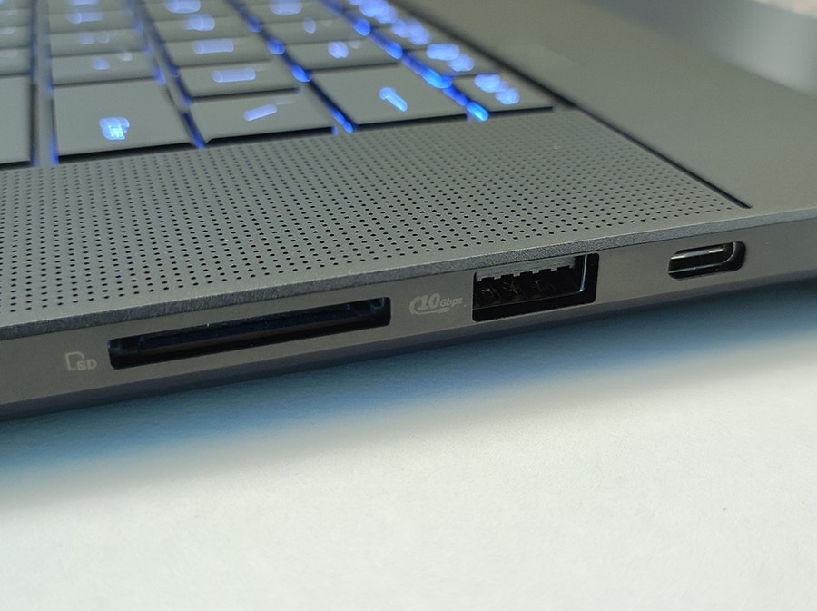 Paremal küljel jätkub ühenduste mitmekesisus. Seal asuvad USB 3.2 Gen 2 Type-A port, mis toetab kuni 10 Gbps andmeedastuskiirust, võimaldades kiiret andmevahetust välisseadmetega. Lisaks on olemas USB 3.2 Gen 2 Type-C port, toetab kuni 10 Gbps andmeedastuskiirust ning võimaldab ekraani ja toite edastust. Olulise lisana on siin ka SD Express 7.0 kaardilugeja, mis pakub kiiret andmeedastust ning on eriti kasulik professionaalsetele foto- ja videograafidele, võimaldades kiiret ja tõhusat meediafailide ülekandmist.
