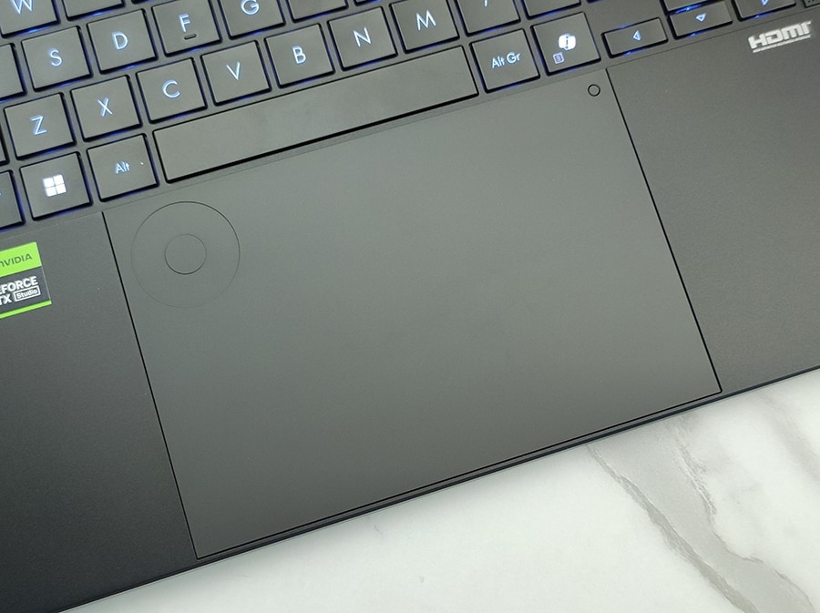Puuteplaat on suur ja sujuva klaaspinnaga ja toetab Windows Precision draivereid. Lisaks sisaldab puuteplaat ASUS-i DialPad funktsiooni – puutetundlikku juhtketast, mida saab kohandada erinevate loovtarkvarade, nagu Adobe Photoshop või Premiere Pro jaoks.