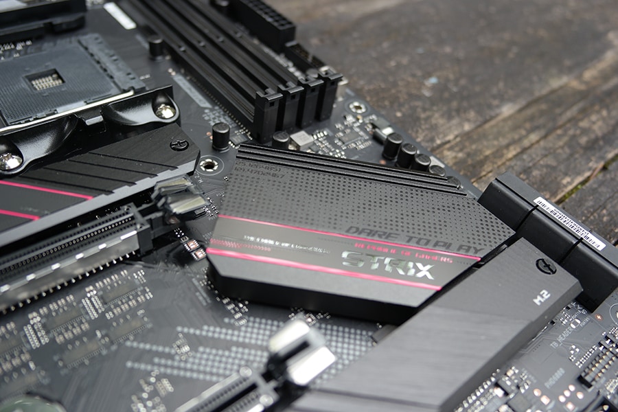 Rääkides veel emaplaadi pesadest, siis kõik kasutajale vajalik on olemas. Andmeladustuse poole pealt on kasutajal võimalus paigaldada kaks M.2 ketta ning kuus SATA 6Gb/s ketast, emaplaat toetab Raid 0, 1, 10 funktsioone. Mälude tugi on emaplaadil hea, võimaldades ülekiirendust kuni 4600 MHz (kõikide kolmanda generatsiooni AMD Ryzen protsessoritega), kasutades jätkuvalt kahe kanali tehnoloogiat. Maksimaalselt toetab emaplaat 128 GB-i, mida saab paigutada emaplaadil nelja pessa olenemata, mis protsessoriga on tegu. Lisaks on toetatud ka veaparandusega mälud (ECC), mis on kasutatav ainult teatud protsessoritega.
