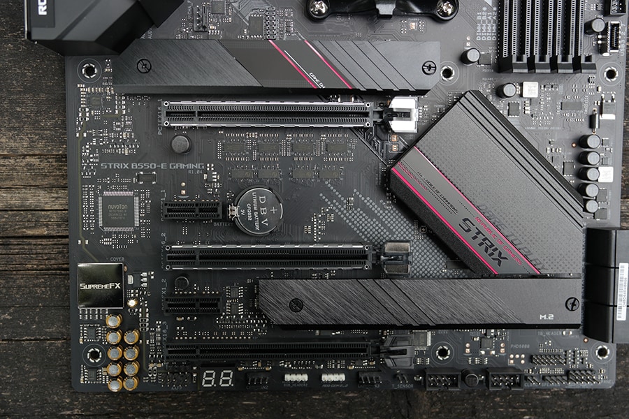 Jõudes ridade juurde, siis emaplaat toetab AMD 3-Way CrossFireX tehnoloogiat ja Nvidia SLI tehnoloogiat – SLI tugi tõstab emaplaadi hinda, kuna emaplaat peab läbima testid ja saama vastava sertifikaadi, võrreldes AMD CrossFireX toega, mis ei vaja töötamiseks mingit lisa ja on tasuta. Vaadates Nvidia lähenemist mitme graafika toele võib öelda, et SLI tugi jääb ainult kõige kallimatele kaartidele – hetkel uuematest kaartidest toetab SLI tehnoloogiat ainult RTX 3090. Juba pikemat aega on levinud trend, mis seisneb PCIe pesade tugevdamises metalliga, antud emaplaadil on tugevdatud kaks esimest täispikkusess olevat PCIe pesa.