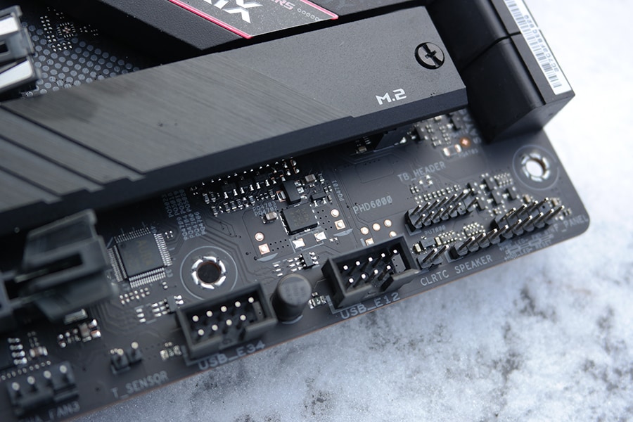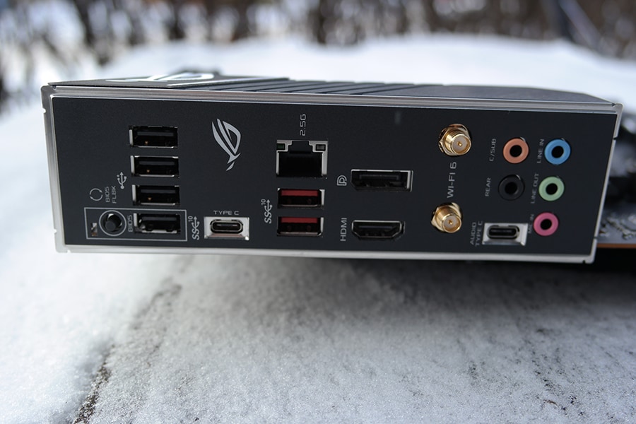 USB tugi on emaplaadil päris hea, omades kahte USB 3.2 teise generatsiooni Type-A ja ühte Type-C pesa. Vanematest ühenduspesadest on võimalik leida neli USB 2.0 pesa, kuid puudub PS/2. Üks USB 2.0 pesadest on mõeldud heli jaoks, mis põhineb Type-C ülesehitusel. Sisemiste USB-e tugi on kasutajasõbralik – enamus RGB kontrollerid ja kõikühes vesijahutid kasutavad USB 2.0 pesasid. Ühesõnaga emaplaadilt on võimalik leida neli USB 2.0 pesa ning kaks esimese generatsiooni USB 3.2 Type-A pesa ja ühe teise generatsiooni USB 3.2 pesa.