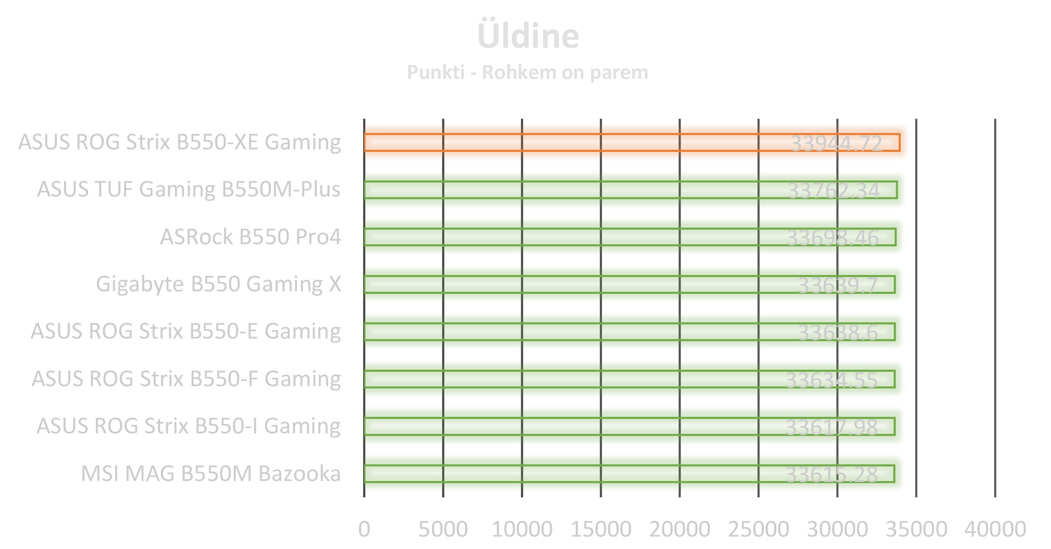 Testimine sujus hästi, ei esinenud ühtegi viga ega probleemi. Testimist saaks edasi arendada kasutades erinevad programme, kuid see muutuks ajamahukaks ning erinevused emaplaatide vahel on tegelikult väga väikesed. Kõige lõpus on välja töötud kokkuvõttev diagramm, mis peaks andma üldise ülevaate, kus mingi emaplaat oma võimsuse poolest on, tegu ei ole just kõige täpsema ülevaatega, aga vähemalt annab kiire ülevaate olukorrast.