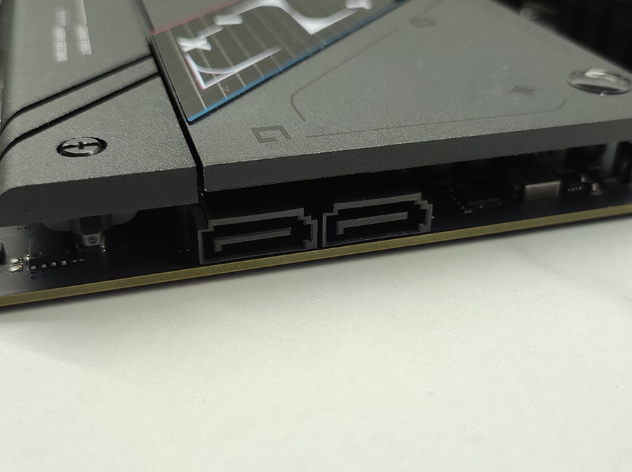 Lisaks on olemas kaks SATA 6 Gb/s porti, mis sobivad traditsiooniliste SSD-de ja kõvaketaste jaoks. SATA portide paigutus on samuti mugav, võimaldades lihtsat kaablite haldust ka kitsamates korpustes.