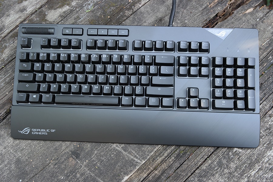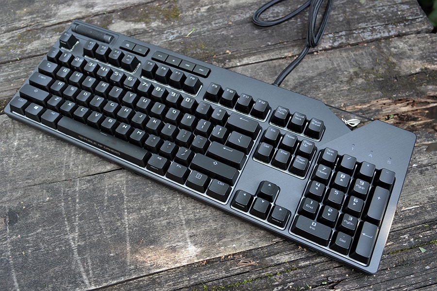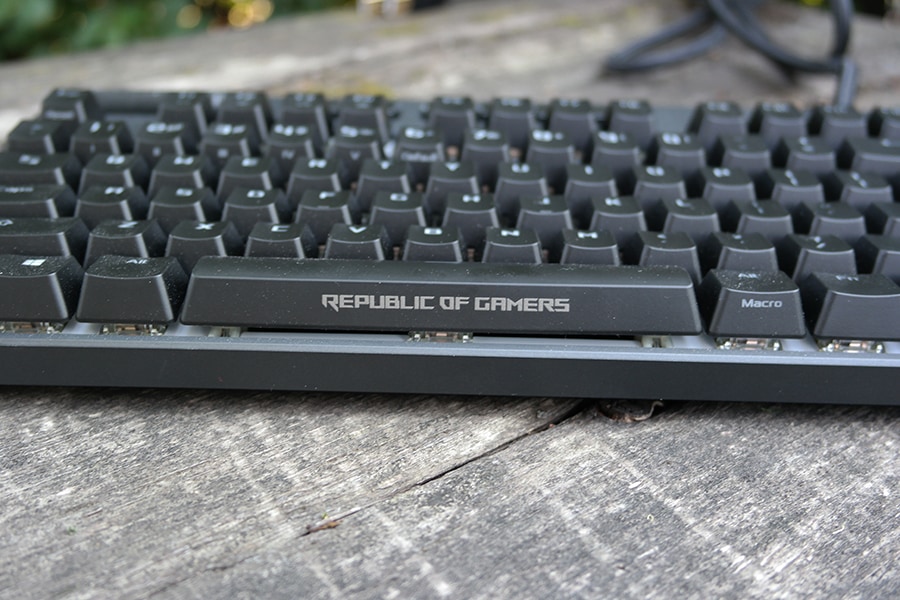 Pakendi seest leiab klaviatuuri, randmetoe, kaks kleepsu, manuaali ning puhta plastikujupi, mida saab kasutaja muuta endale meelepäraseks ning seejärel asendada RGB ASUS-e logo enda omaga. Klaviatuuriga on kaasas kaheks jagatud USB kaabel ning eemaldatav silikoonilisest plastikust randmetugi. Tagaosal asetseb üks USB 2.0 port, kuhu on võimalik kasvõi telefon laadima panna, ehk võimsust on seal piisavalt, küll aga ei ole klaviatuurid pordid loodud andmete edastamiseks.