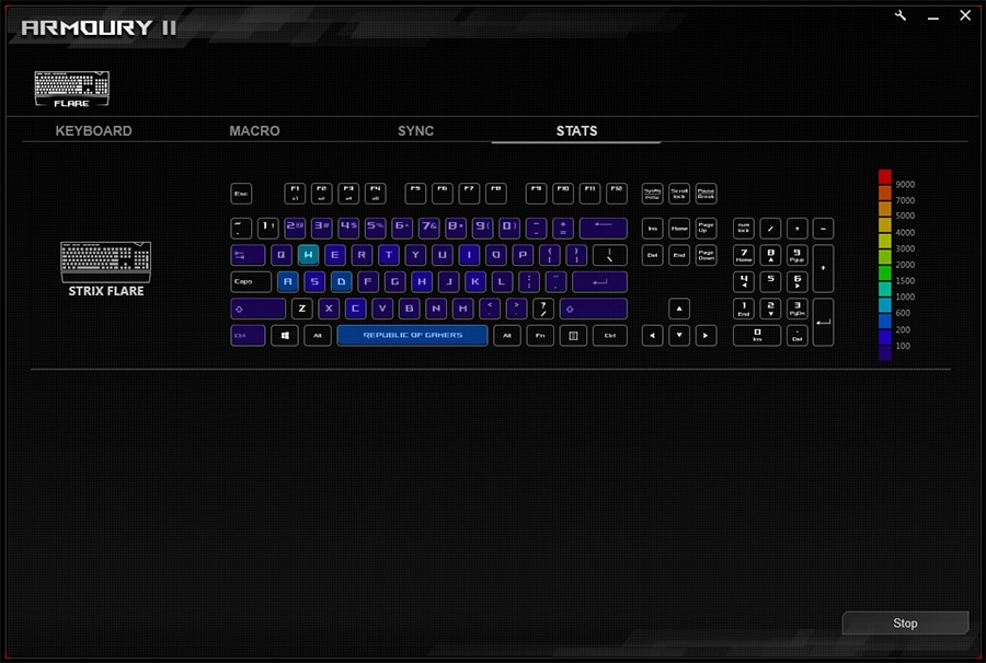Armoury abil on võimalik programmeerida nuppe, muuta valgustust, lisada makrosid, sünkroniseerida erinevaid ASUS-e tooteit ning jälgida oma klaviatuuri klahvide kasutust – mida ei toeta hetkel isegi Corsair!