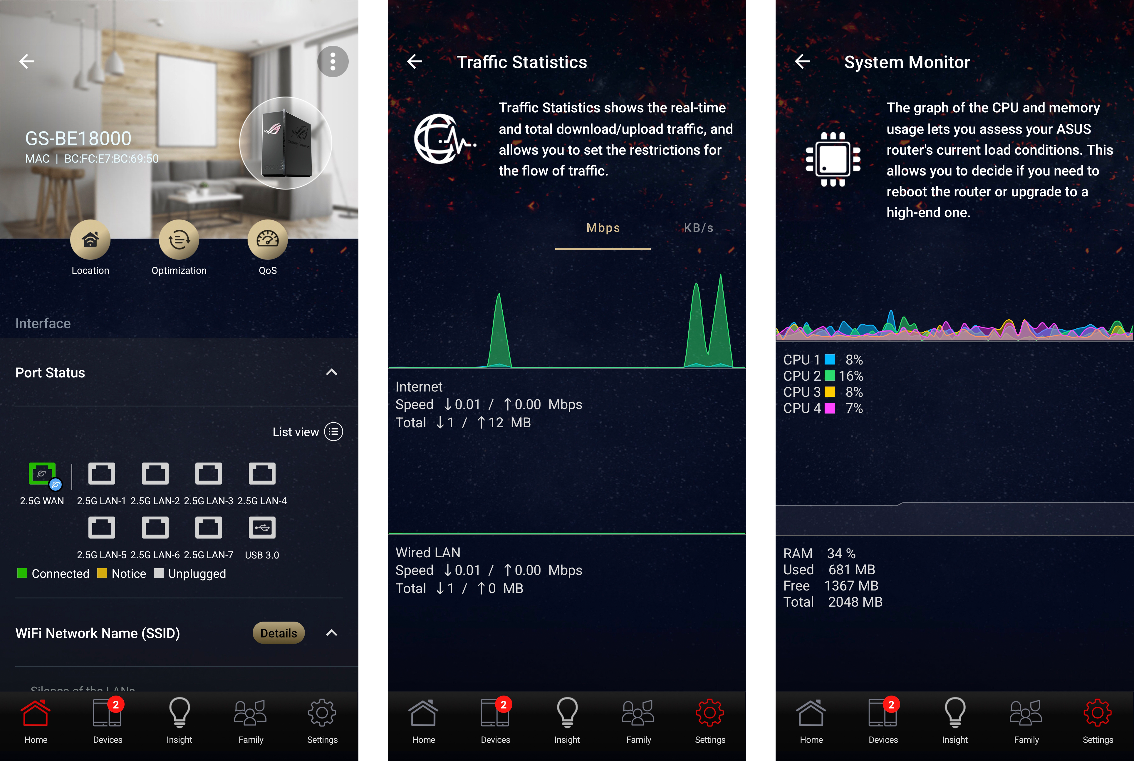 Seadistamine on ASUSele omaselt lihtne. Kiirseadistus töötab nii mobiilirakenduses kui ka veebiliideses, kusjuures brauseri kaudu saab ligi detailsematele funktsioonidele, näiteks MLO konfiguratsioonile, VPN-i seadistamisele ja täpsematele liiklusreeglitele. Kasutajaliides on kiire, loogiline ja visuaalselt viimistletud, säilitades samas ROG-stiili ilma kasutusmugavust ohverdamata.
