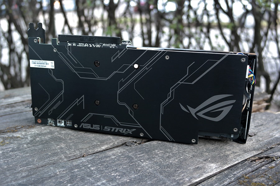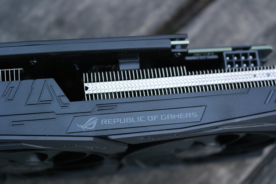 1660Ti alumine osa on valgustatud RGB triipudega nagu teisedki ROG Strix kaardid, kuid tõenäoliselt raha kokkuhoiu mõttes on valgustuseta jäetud kaardi pealmine osa.