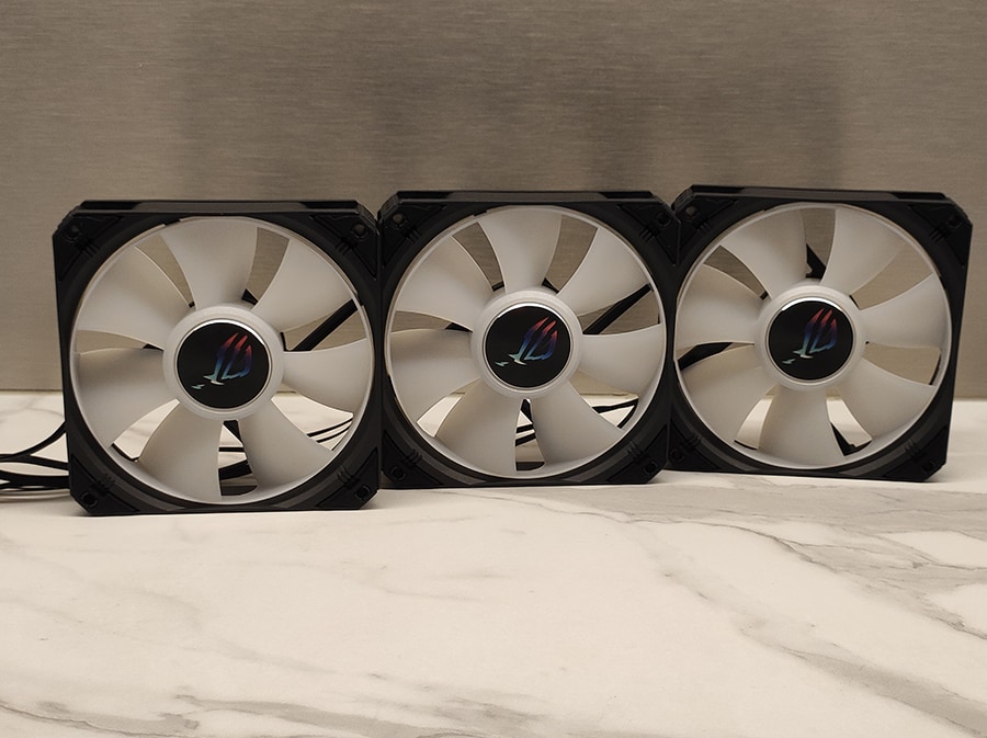 ROG Strix LC III 360 ARGB LCD paistab silma tasakaalu hoidmisega jahutustõhususe ja mürataseme vahel. ROG Strix AF-12S ARGB ventilaatorid, millel on uus labade disain, võimaldavad paremat staatilist rõhku, tagades ühtlase jahutustõhususe. Ventilaatorid töötavad maksimaalselt 2200 RPM juures, pakkudes muljetavaldavat 70,38 CFM õhuvoolu müratasemega 36 dB(A). Lisaks võivad ventilaatorid madalate koormuste korral töötada 0 RPM juures, tagades vaikse töö.