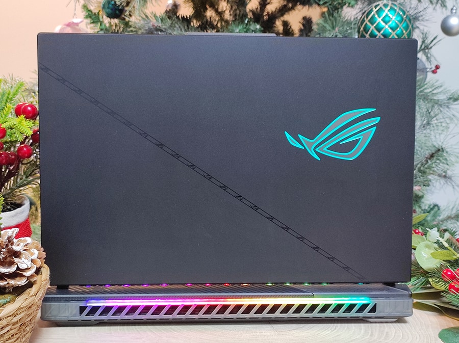 ASUS ROG Strix SCAR 16 disainerid pole jätnud ühtegi võimalust kasutamata, sülearvuti ükski komponent ei ole jäänud omamoodi disainist ilma. Esiosa ja küljed on varustatud RGB-valgustusribadega. Klaviatuur on samuti RGB-valgustusega ning rõhutab mängimiseks olulisemaid alasid läbipaistvate klahvidega.
