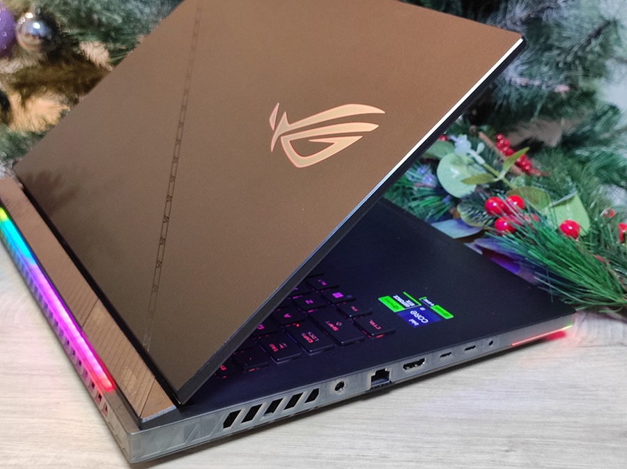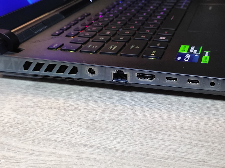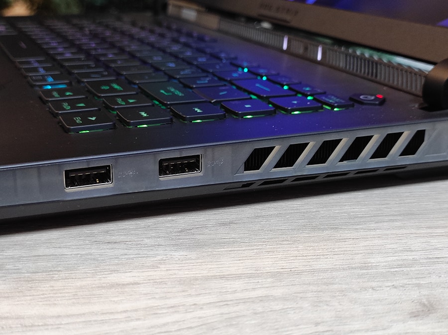 Enamik ROG Strix SCAR 16 pordid on koondunud sülearvuti vasakule küljele. Paremal pool asetsevad vaid kaks USB-porti.