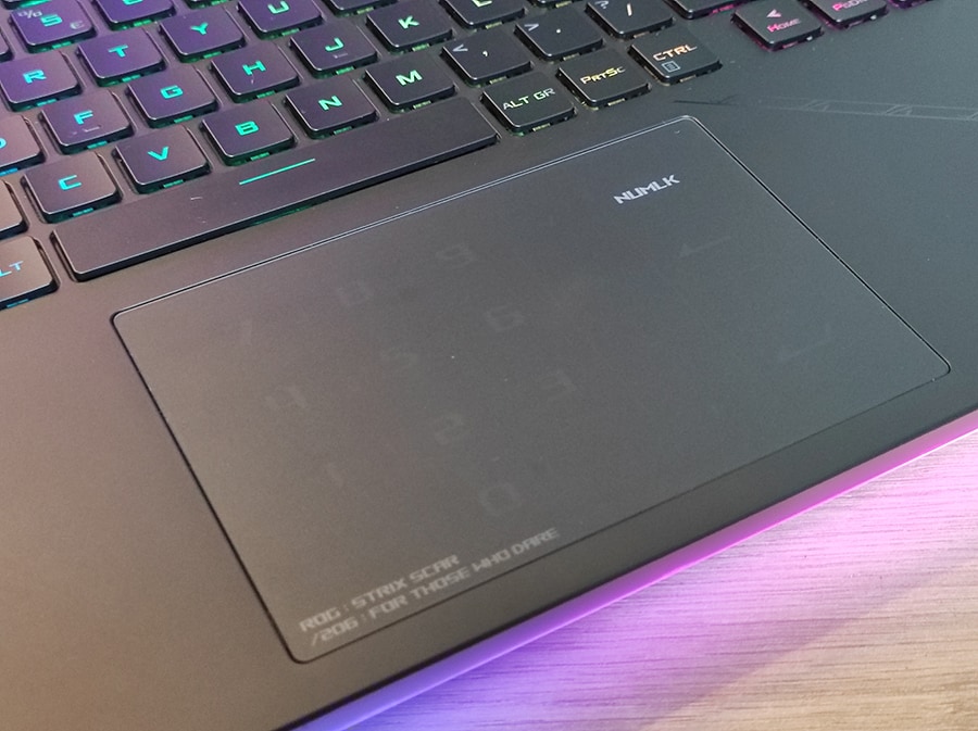 Mänguarvuti clickpad on meeldivalt suur, mõõtudes 13 × 8,5 cm ja on paigutatud nii, et see ei tohiks segada klaviatuuri kasutamist. Tänu klaaspinnale ei tohiks selle siidine matt tekstuur kergelt kuluda. Pad omab meeldivat puudutust ja head libisemisomadust. Clickpad ise reageerib kiiresti ja täpselt kõikidele sisenditele, sh nurkades.