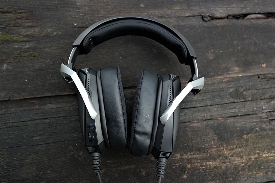 Esimene asi mis silma paistab – klapid on tunduvalt suuremad kui tavapärased peakomplektid. Kui need pähe panna, siis näeb kasutaja välja… veider, kõik on kuidagi proportsioonist väljas. Igatahes, mõlemal küljel LED logo, klappidel on jahutuseks jäetud vaba ruumi, mistõttu on klapid ka palju paksemad.