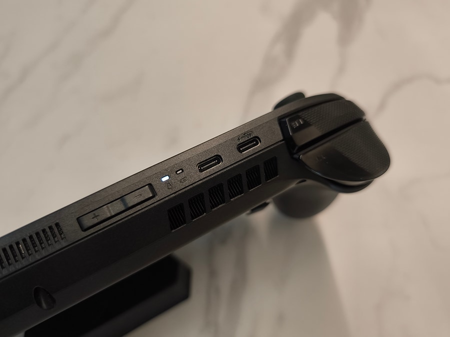 Seadmel on kaks USB-C porti, millest üks toetab USB4 standardit kuni 40 Gbps andmeedastuskiirusega ning võimaldab kasutada DisplayPorti ja Power Delivery funktsioone. See tähendab, et vajadusel saab seadme ühendada välise graafikalahenduse, doki või mitme monitoriga ilma adapteriteta.