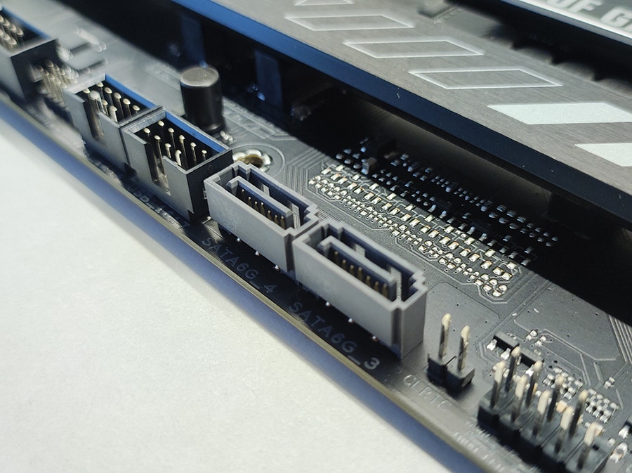 Lisaks M.2 pesadele on olemas neli SATA 6 Gb/s porti traditsiooniliste SSDde või kõvaketaste ühendamiseks. SATA portide asetus on samuti mugav, olles paigutatud emaplaadi serva, et juhtmete haldus oleks lihtsam.