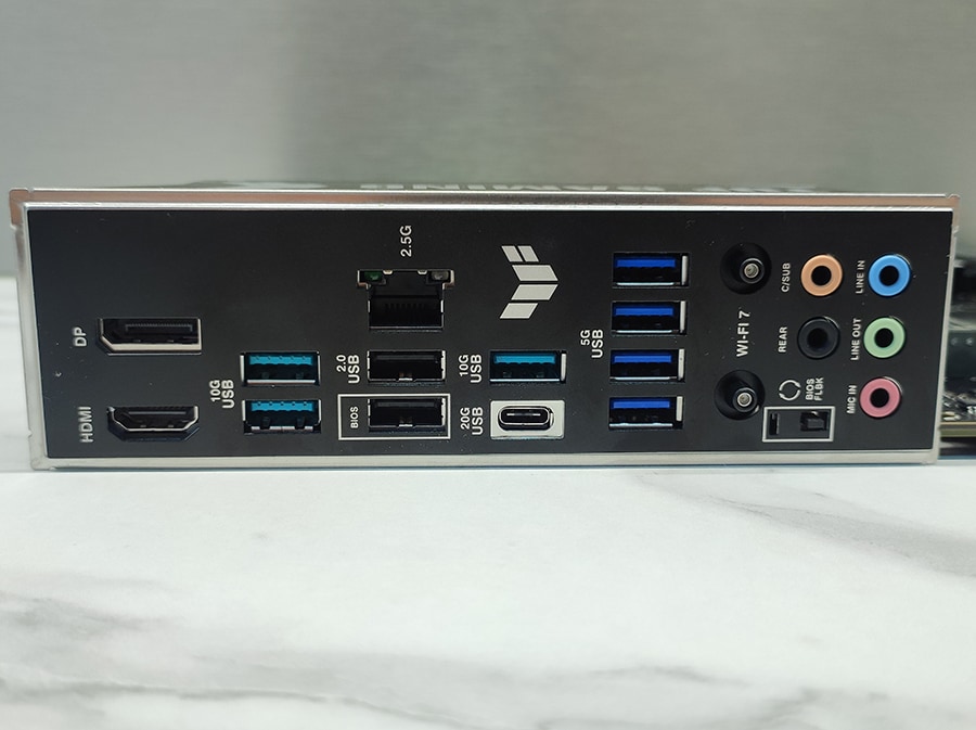 Tagapaneelil on olemas USB 20 Gbps Type-C pesa, mis sobib ideaalselt kiireks andmeedastuseks. Lisaks leiab sealt mitu USB 10 Gbps Type-A ja USB 5 Gbps Type-A porti, mis pakuvad head jõudlust näiteks väliste SSD-de või lisaseadmete kasutamisel.