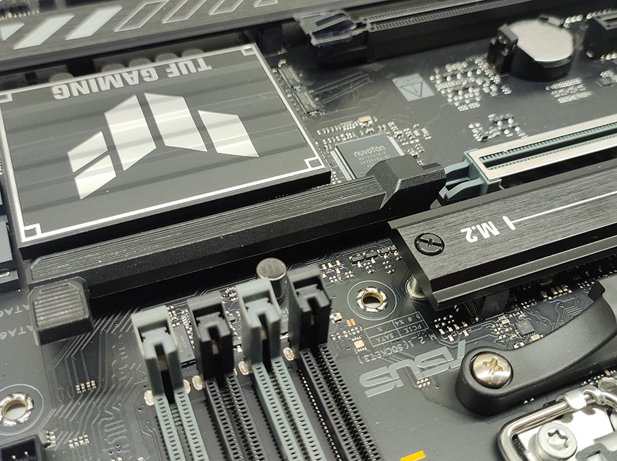 ASUS TUF Gaming B850-PLUS WiFi pakub korralikku salvestuslahenduste valikut, mis sobib nii mänguritele kui ka neile, kes vajavad üldiselt palju salvestusruumi. Emaplaadil on kokku kolm M.2 pesa, neist kaks toetavad PCIe 4.0 ning üks PCIe 5.0 kiiruseid. Kõik M.2 pesad on varustatud jahutusradiaatoritega, mis aitavad hoida temperatuuri kontrolli all.