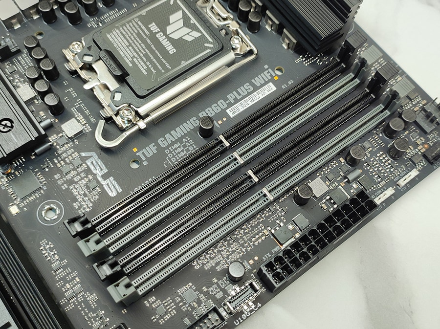 B860-PLUS WiFi toetab DDR5 mälusid ja mahutab nelja DIMM-pesa peale kuni 192 GB. Mälude ülekiirendus ulatub kiiruseni 8666+ MT/s.
