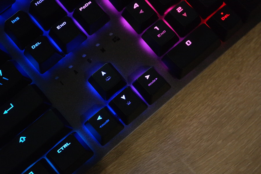 Igal nupul on oma LED, mida on võimalik individuaalselt kontrollida. Kui K5 omas väga tagasihoidlikku, pea olematut valgustust, siis K7 valgustus on vabalt võrreldav klaviatuuride lipulaevadega nagu ROG Strix Flare, HyperX Elite RGB ning Corsair Strafe RGB MK.2.