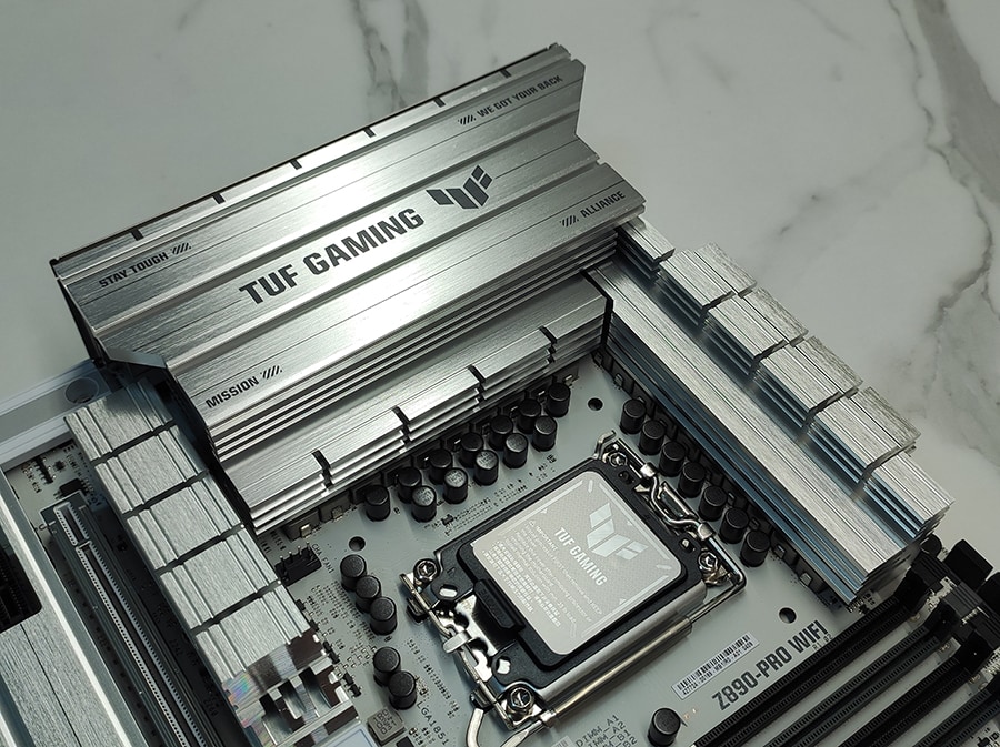 ASUS TUF Gaming Z890-PRO WiFi pakub muljetavaldavat jõudlust tänu tugevale toiteallikale ja tõhusale jahutusele.