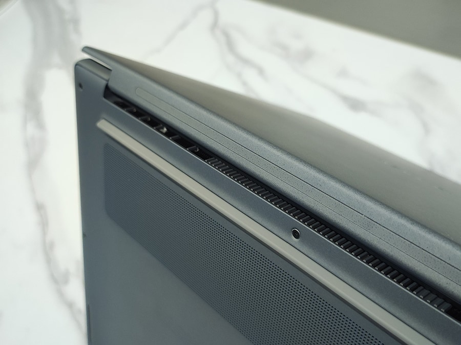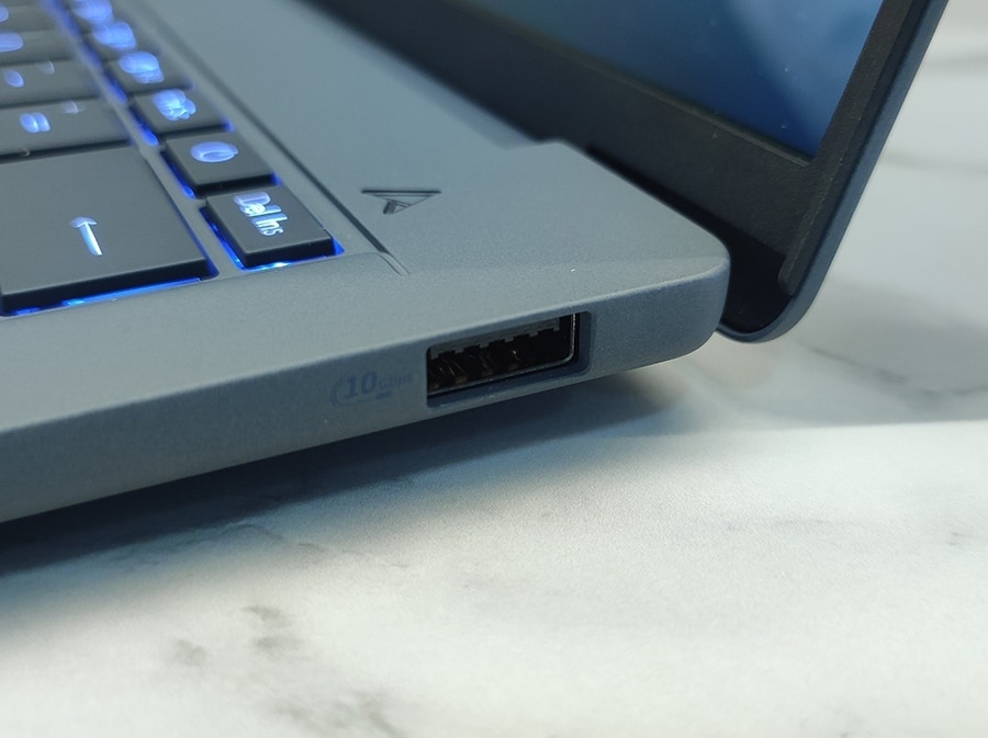 Paremal küljel asub üks USB A 3.2 Gen 2 port, mis pakub kuni 10 Gbps kiirusega ühendust ja sobib hästi väliste ketaste või traditsiooniliste seadmetega töötamiseks. Samuti paikneb seal 3,5 mm kombinatsioonipistik (kõrvaklappide ja mikrofoni ühenduseks) ning microSD-kaardilugeja, mis täidab fotograafia ja mobiilse andmesidega seotud vajadusi ilma adapterita.