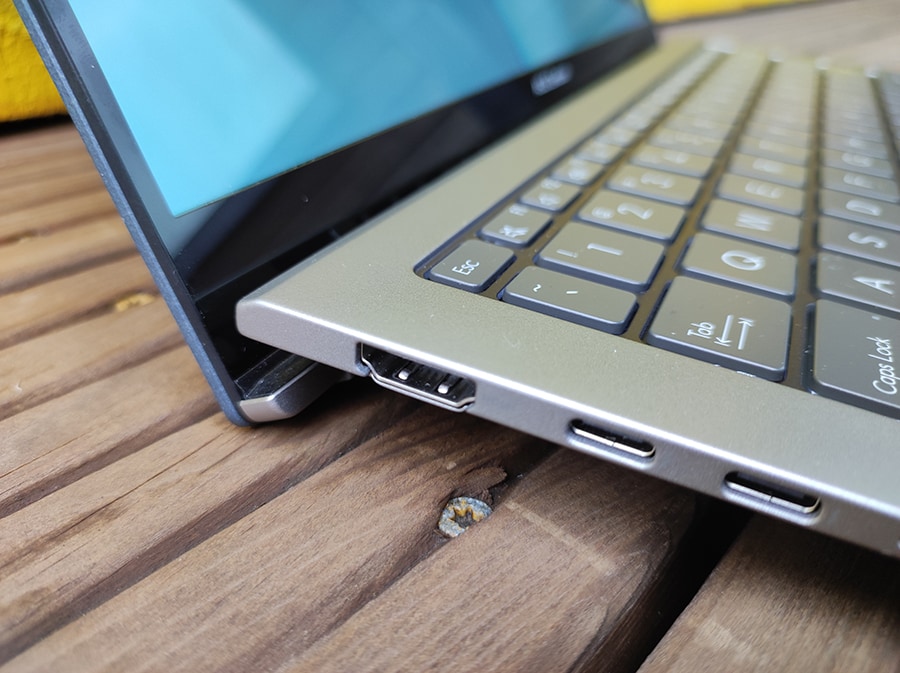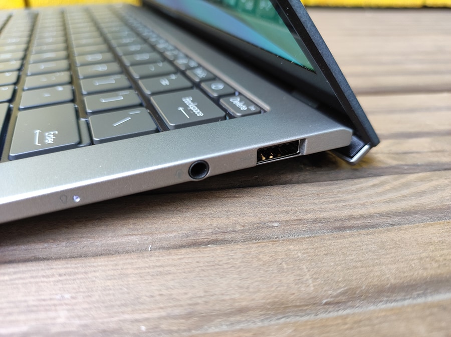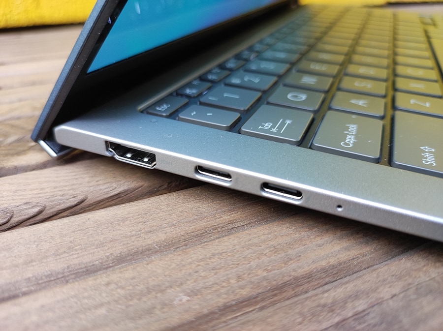 Möödunud aasta ZenBook S 13 kasutas eranditult kolme USB-C pesa lahendust, kuid Asus pakub nüüd 2x USB-C pesale lisaks ka USB-A pesa (hoolimata üliõhukesest korpusest!) ning täissuuruses HDMI pesa. See on igapäevases kasutuses oluliselt praktilisem ja kuna tegu on Inteli sülearvutiga, toetavad mõlemad USB-C pesad loomulikult ka Thunderbolt 4 tehnoloogiat.