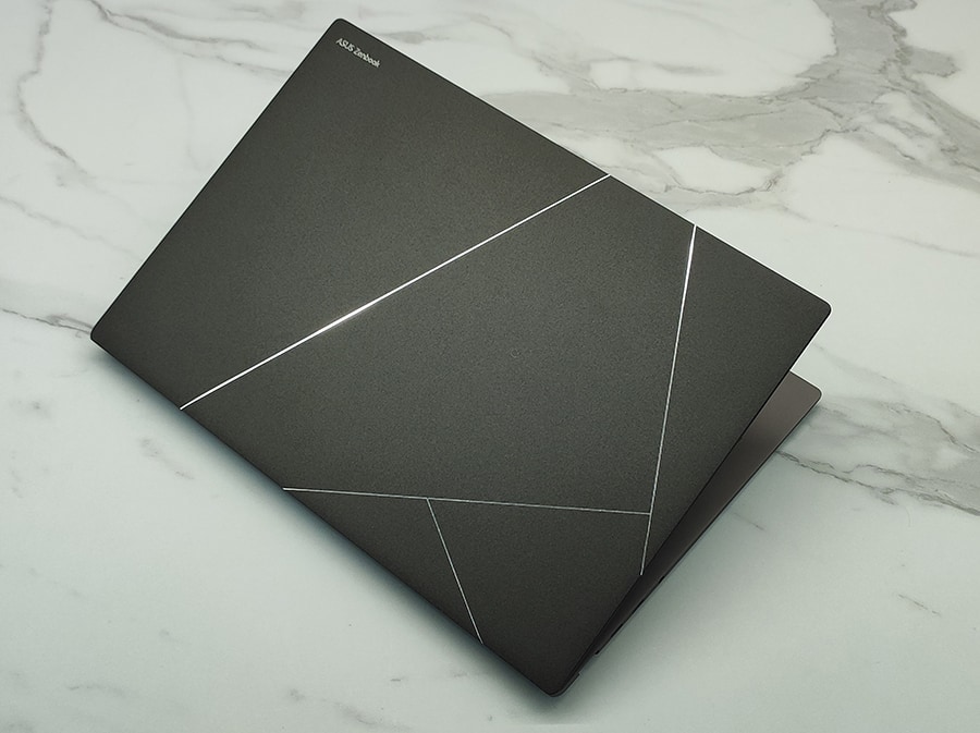 Zenbook S 14 on üks oma hinnaklassi kergemaid ja õhemaid sülearvuteid kaaludes vaid 1,16 kg ja olles kõige paksemast kohast mõõdetuna 13 mm. ASUS kasutab CNC-töödeldud tseeriumalumiiniumist (Ceraluminum) korpust, mis on vastupidav ja elegantse välimusega. Seade on saadaval Scandinavian White (hõbevalge) ja Zumaia Gray (tumehall) värvitoonides, mis mõlemad on meeldiva mati välimusega. Kuigi pind on vastupidav sõrmejälgedele, võib mustuse puhastamine olla ülimati materjali tõttu veidi keerulisem.