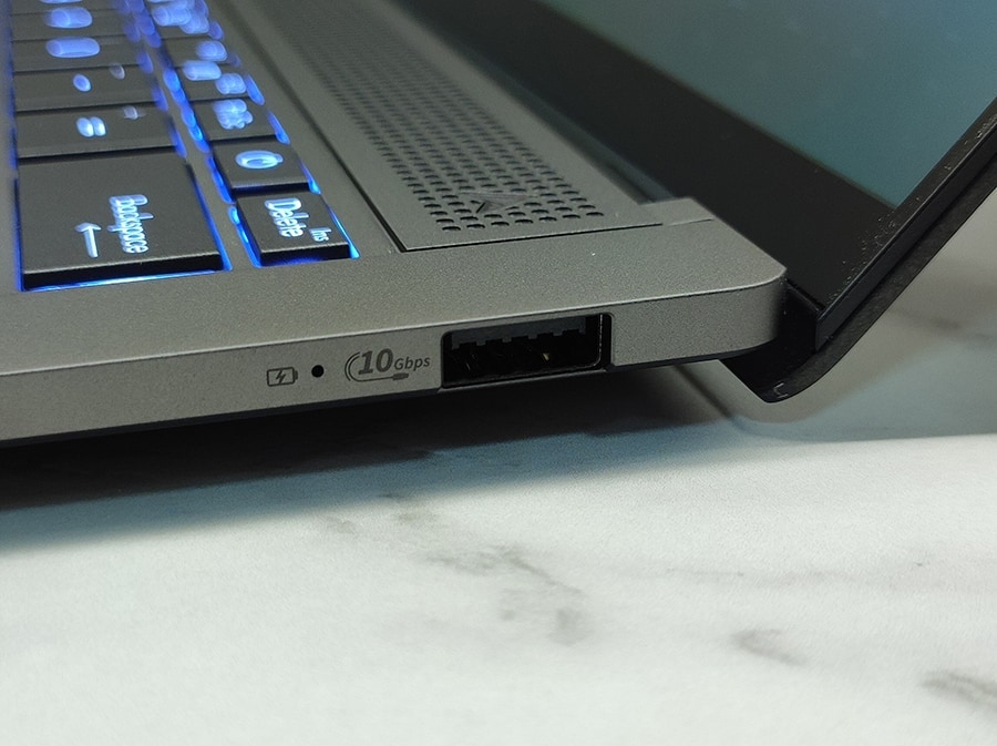 Paremal küljel on USB-A 3.2 Gen 2 port, mis võimaldab ühendada vanemaid seadmeid ja pakub kuni 10 Gbit/s andmeedastuskiirust. Kuigi olemasolevad ühendused katavad enamike kasutajate vajadusi, võiks paremal küljel olla veel üks laadimispesa. Samuti võib SD-kaardilugeja puudumine olla takistuseks kasutajatele, kes töötavad väliste andmekandjatega.