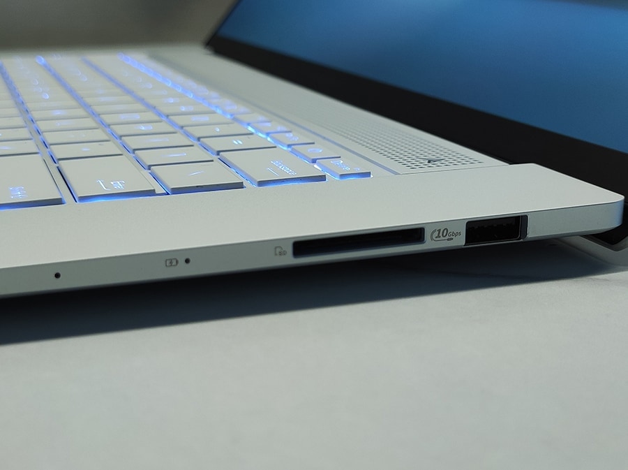 Paremal küljel on USB-A 3.2 Gen 2 port ja SD-kaardi lugeja.
