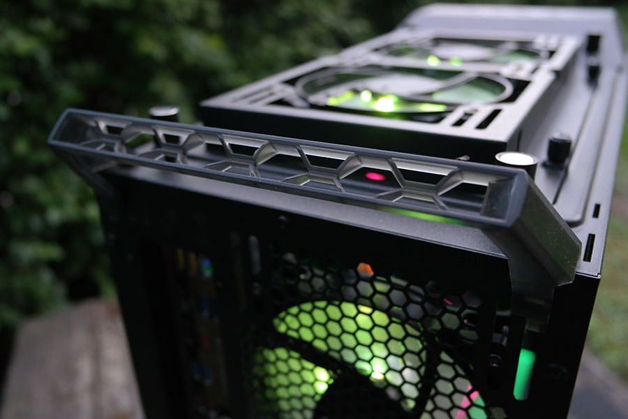 Taga on I/O kaablite peitmiseks korpusel omapärane raamistik, mis on eemaldadav ja muudab korpuse veidikene suuremaks, kuid omapärasel kombel ka välimust paremaks. Kaableid on raskem näha ja klaaspaneeli ümber tekib raamistik, mis jätab küll korpusest suurema mulje, aga muudab välimust mõnusalt sümmeetrilisemaks, mis meile isiklikult tohutult meeldib.