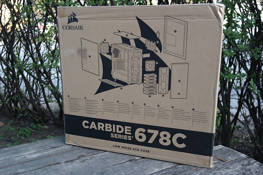 Võrreldes näiteks NZXT korpustega, on Corsair’i korpused alati olnud keskkonnasõbralikumad, kuid siiski stiilsed. Pakendil on kasutatud vaid musta värvi, et pakend oleks võimalikult suurel määral taaskasutatav. Kuigi pakendi pealmise osaga on „koonerdatud“, siis pakendi turvalisust ei mõjuta see absoluutselt.