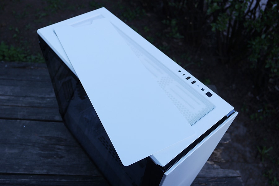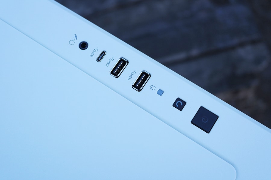 Korpuse pealmisel paneelil asub power ning restart nupp, kaks USB 3.0 ja üks USB 3.1 Type-C pesa ning kombineeritud audio jack.