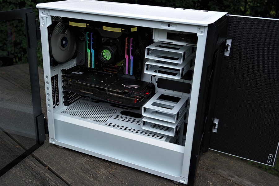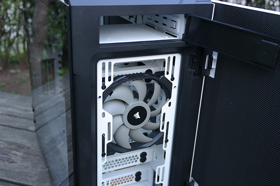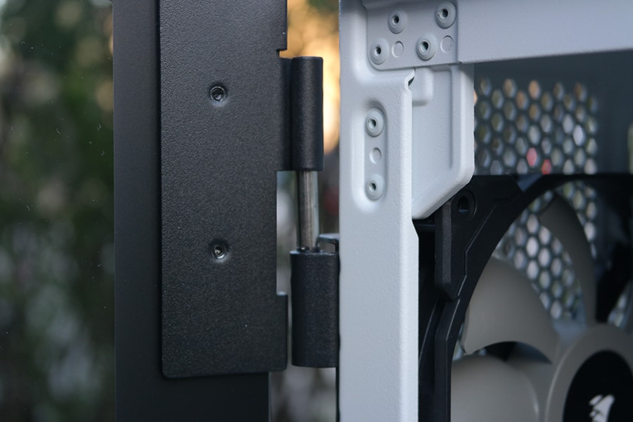 Klaasist küljepaneelide puhul on enamasti kasutatud kinnitusmehhanismina kruve klaasi nurkades. Corsair on võtnud kasutusele hinged ning küljeklaas hoitakse kinni magnetitega - kõik see võimaldab korpuse sisule palju kergemat ligipääsu ja on funktsionaalsuse poolest palju parem. Samas oleks võinud olla ka võimalus fikseerida küljeklaas paika, et see koheselt peale ei vajuks.
