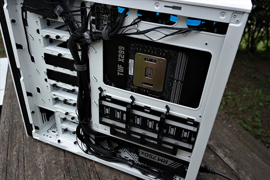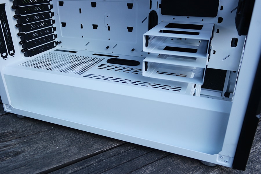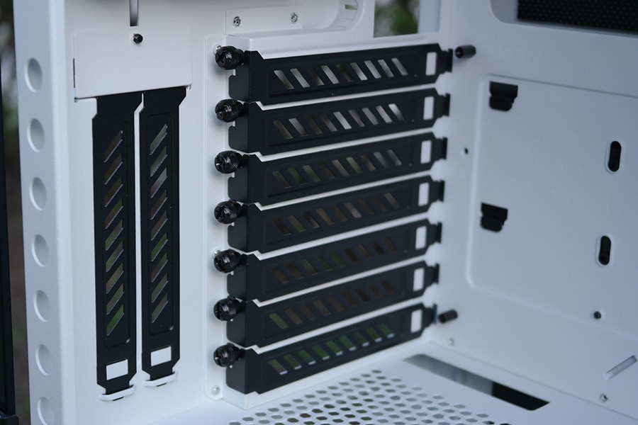 Üks negatiivne osa PCIe pesade puhul on kinnitamise jaoks tehtud ümmargused augud, mis ei ole üldse mugavad ning oleks pigem tahtnud näha väljalõiget. Me isiklikult olime hädas, kuna põhiline kruvikeerajate komplekt, mida me kasutame ei olnud piisavalt pikk, et ulatuda sealt august läbi ning samas oli ka liiga pikk, et mahtuda ääre alla. Toiteploki kate on mõnusalt ventilatsiooni auke täis ja omab sisselõiget, et paigutada pikem radiaator.