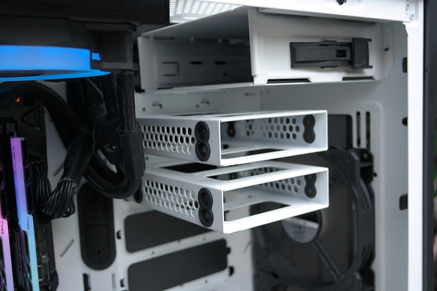 SSD paigutus on mõnus ja omab väga lihtsat vedru ja kinnihoidmismehhanismi. Samas kui on soov mõni kaabel vedada emaplaadi tagant, peab eemaldama kogu SSD hoidiku või jätma ühe osa tühjaks ja vedama kaablid läbi ühe SSD pesa, mis ei ole just kõige mõnusam.