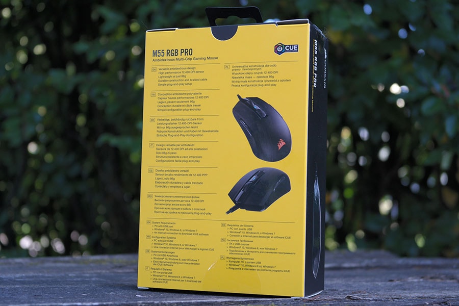 Üldiselt jääb pakend hästi silma kasutades matt musta ja kollast tooni. Võrreldes vanemate pakenditega on uuemad palju simplistlikuma välimusega, esiosalt leiab vaid hiire kujutise, nime ja iCUE toe.
