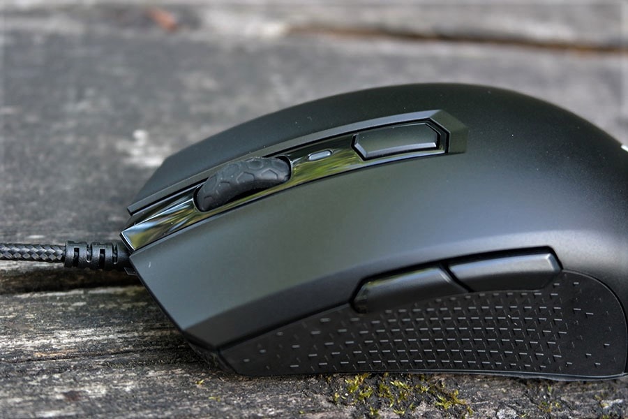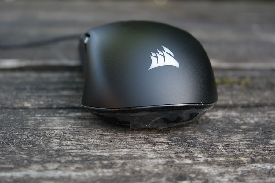 Tagasihoidliku hinnaga tuleb ilmselgelt kaasa ka tagasihoidlik valgustus. Valgustatud on peopesa all asuv Corsairi logo ning DPI nupp.