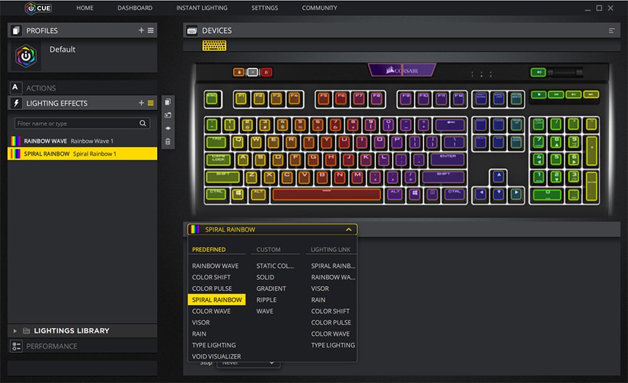 STRAFE toetab ka CUE (Corsair Utility Engine) programmi, mis taaskord pälvib vaid meie kiidusõnu – programm on visuaalselt ligitõmbav, kiire ning funktsioonirikas, mida kahjuks ei saa me hetkel mitte ühegi teise sarnase programmi kohta öelda. Lugedes paljude kasutajate kaebusi seoses CUE keerukusega, siis jah, see on “keerulisem” kui paljud teised, kuna funktsioone on ju rohkem ning kõik tuleb kuskile mahutada. 15-minutiline tutvumine peaks olema piisav, et kõigele pihta saada.