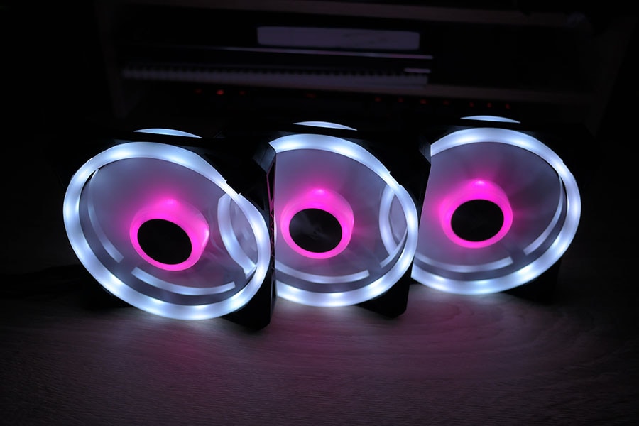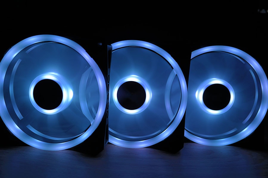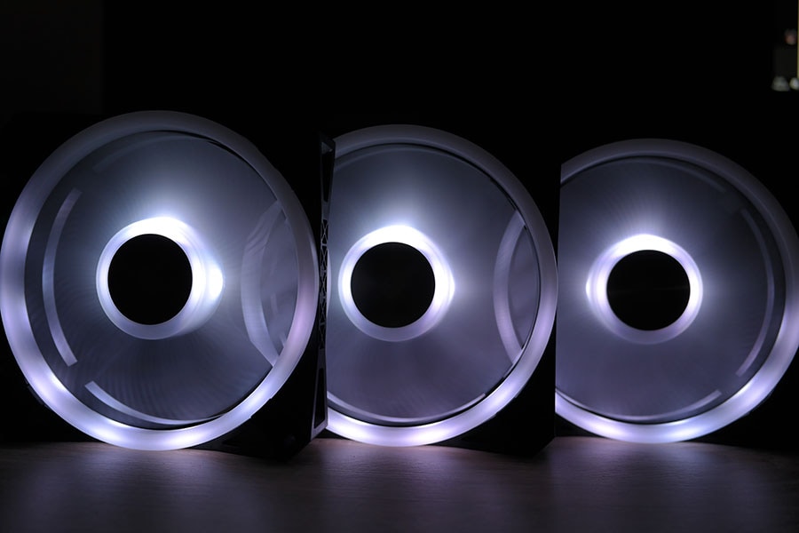 Igast ventilaatorist tuleb välja kaks kaablit, üks neist võimsuse ja kiiruse tarvis ning teine siis valgustuseks. Võimsuse poolest suudavad ventilaatorid välja pumbata 525-1500 RPM-i (või siis 13.17-41.8 CFM-i), mis on küll ausalt öeldes natukene pettumust valmistav, kuna näiteks Raijintek IRIS ventilaatorid on rohkem kui poole odavamad, kuid kiiruse poolest isegi paremad (800-1800 RPM-i). Heli poolest on tegemist keskpäraste ventilaatoritega, mille helitugevus peaks jääma 18-26 dBA vahele.