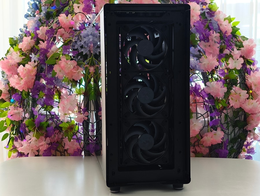 Selle asemel keskendub see ühtlase õhuvoolu säilitamisele kogu korpuse ulatuses, tagades, et protsessor, graafikakaart ja emaplaadi komponendid saavad piisava jahutuse ilma kuumade punktide või liigse turbulentsita.