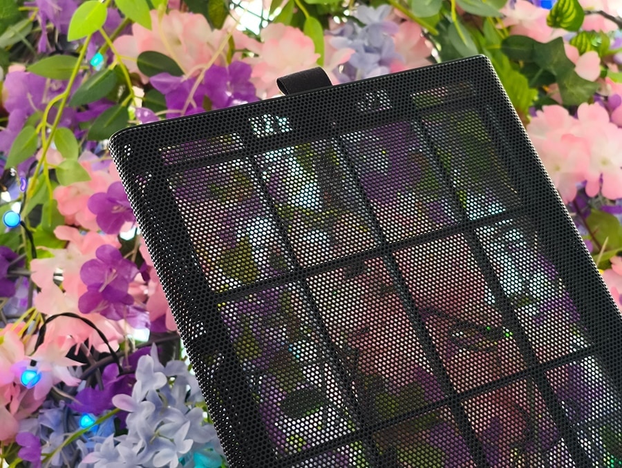 Õhu sissevõtt toimub läbi esipaneeli vertikaalse liistudisaini. Ühe suure avatud võrgupinna asemel juhitakse õhk korpusesse mitme kitsa kanali kaudu, mis paiknevad puitelementide vahel. Selline lahendus tekitab loomulikult suurema takistuse kui täielikult avatud mesh-võrk, kuid aitab samas suunata õhu ühtlasemalt üle kogu esiosa.