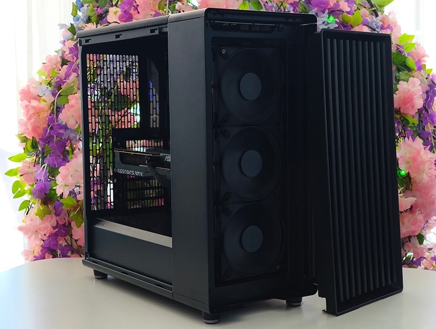 Ülejäänud väliskujundus järgib sama filosoofiat. Paneelid istuvad tihedalt ning painduvus on minimaalne, samal ajal kui viimistlus on ühtlane. Karastatud klaasist külgpaneel on kergelt toonitud ja puhtalt paigaldatud ja võimaldab sisemisi komponente eksponeerida ilma, et need hakkaksid korpuse visuaalset identiteeti domineerima. Vastaspoolne külgpaneel on valmistatud terasest, mis lisab jäikust ja aitab vähendada soovimatuid vibratsioone.