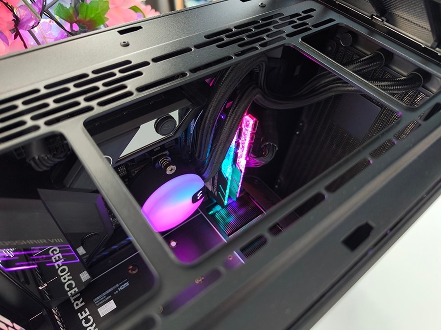 Isegi madalamate ventilaatorikiiruste juures püsib õhuvool protsessori ümbruses piisavalt struktureerituna, et vältida järske temperatuurihüppeid. Kuigi see ei ole madala mürataseme juures sama tõhus kui äärmiselt avatud airflow-disainid, väldib korpus siiski järske termilisi kõikumisi, mida sageli kohtab piiravamates lahendustes.