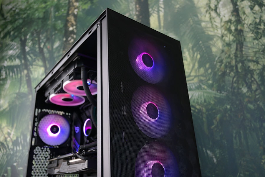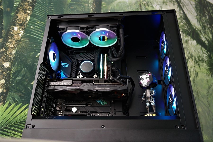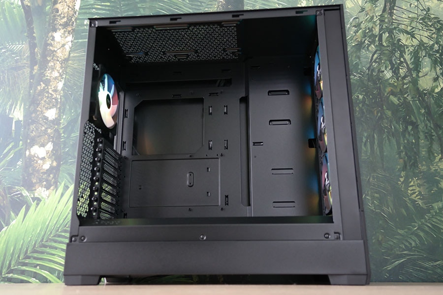 Ventilaatorite ülesehitus on siis vastavalt mudelile, et kas omavad valgustust või mitte. Korpusega tuleb kaasa 4x Aspect 12 RGB ventilaatorit, mille kogusele kasutaja saab ise juurde lisada veel kaks ventilaatorit korpuse ülemisele paneelile. Ventilaatorite toite ja valgustuse seadistamine on väga kasutajasõbralik tänu võimalusele ühendada ventilaatorid kõik üksteise sappa ning kõike viimasena ühendus ühendada vastava pesaga. RGB ühenduse jaoks saab kasutada korpusesse sisseehitatud kontrollerit. Tehase seadistusena on paigutatud esipaneelile kolm ventilaatorit ning taga paneelile üks ventilaator.