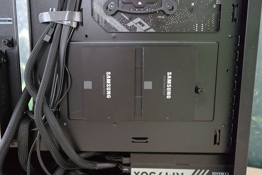 SSD seadmete jaoks on emaplaadi taga olemas kaks spetsiaalset kinnitust ning lisana on võimalik kasutajal muretseda ekstra SSD lisakinnitus 10.99 euro eest. Lisakinnitus paikneb korpuse sees toiteploki sektsiooni katte peal. Juhul kui on soov saab emaplaadi tagant võtta kinnituse ja paigutada see korpuse sisse toiteploki sektsiooni peale on see võimalus kasutajal olemas, et näiteks eksponeerida SSD seadmeid kui need on RGB toega või äkki on tegu kolmanda osapoole RGB kontrolleriga.