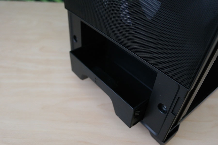Esipaneeli võrk paneeli all asetseb magnetiline luuk ning luugi taha on peitetud kaks 5.25 tollised pesad, üks pesa on hõivatud hoiusahtliga, mida saab kergesti eemaldada kui selle jaoks ei ole soovi ning tahaks võtta kasutusele mõlemad 5.25 tollised pesad.
