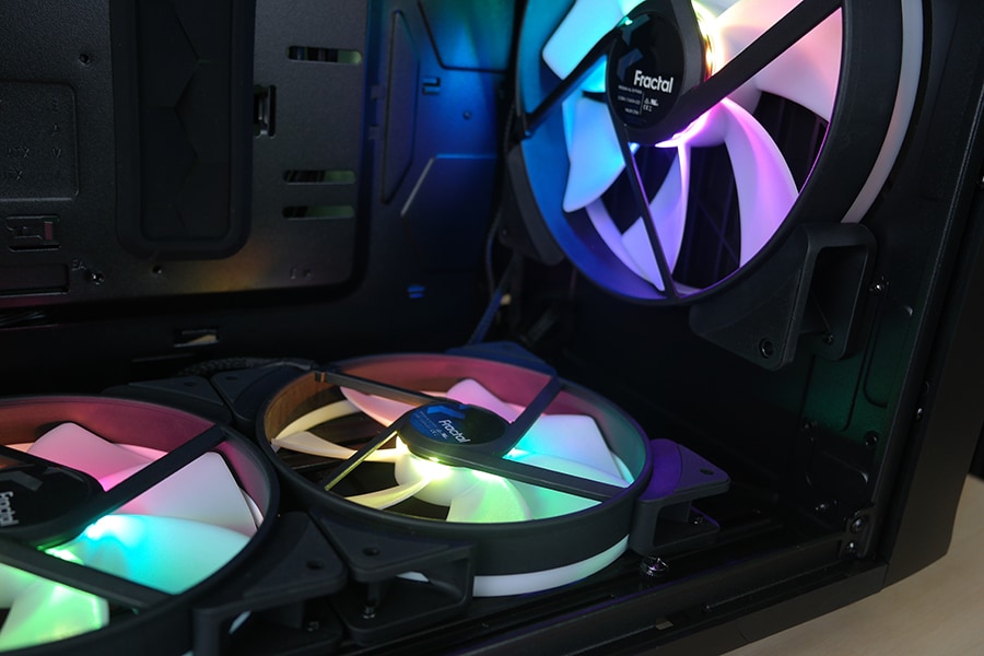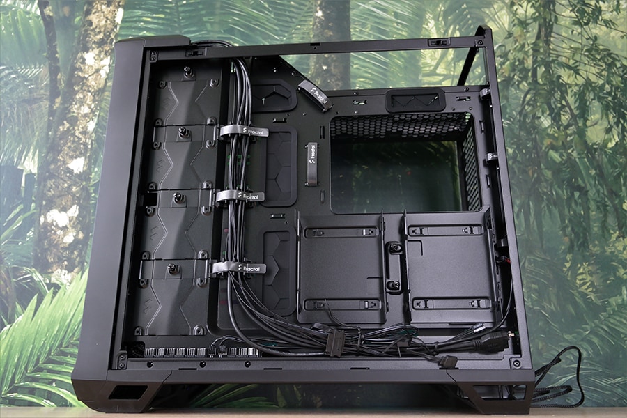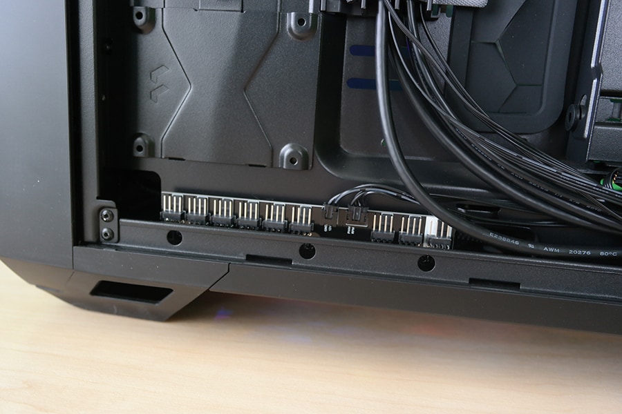 Tulenevalt korpuse ülesehitusest võtsime lähenemise ühenda vastavad kaablid ühekaupa ning planeerida vastavad kaabli paigutuse asukohad. Tehase poolt paigutatud ventilaatorid omavad kahte juhet iga ventilaatori kohta, mis teeb kokku 10 eraldi juhet, mis tuleb paigutada kusagile korpusesse. Ventilaatorite puhul on asi kerge, kuna Fractal Design pani korpusega kaasa 9 pesaga PWM ventilaatori kontrolleri, siis ei pea muretsema, et kas emaplaadil on piisavalt pesasid. Seevastu RGB puhul peab kasutama kas emaplaadi või mõne kolmanda osapoole RGB kontroll moodulit.